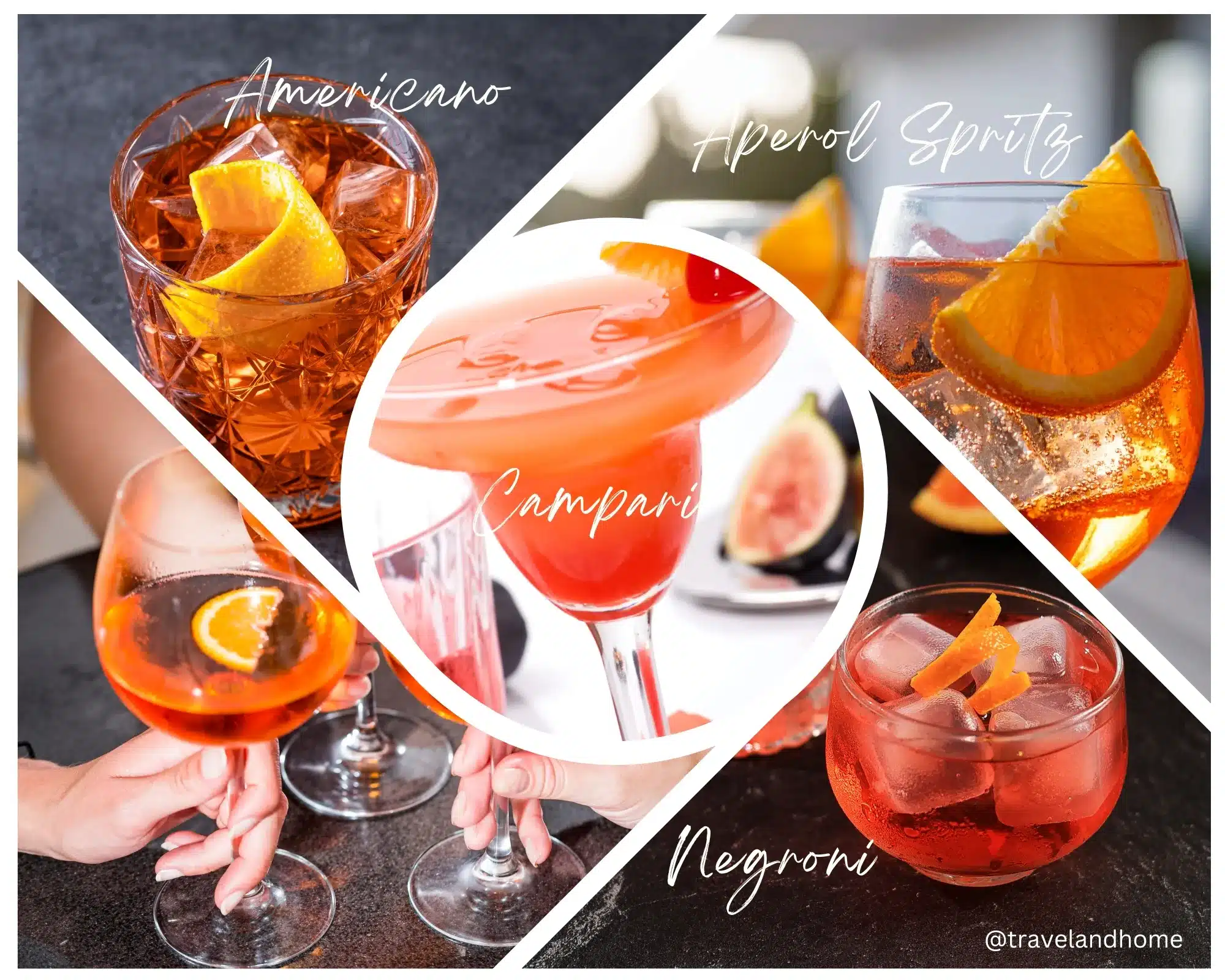 Campari Spritz – It’s a light, bubbly, refreshing cocktail made with three parts Prosecco, two parts Campari, and one part soda water.